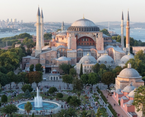 Sultan Ahmet Camii, 1609-1616 yılları arasında Osmanlı Padişahı I. Ahmed tarafından İstanbul’daki tarihî yarımadada, Mimar Sedefkâr Mehmed Ağa’ya yaptırılmıştırCami mavi, yeşil ve beyaz renkli İznik çinileriyle bezendiği için ve yarım kubbeleri ve büyük kubbesinin içi de yine mavi ağırlıklı kalem işleri ile süslendiği için Avrupalılarca “Mavi Camii (Blue Mosque)” olarak adlandırılır. Ayasofya’nın 1935 yılında camiden müzeye dönüştürülmesiyle, İstanbul’un ana camii konumuna ulaşmıştır.